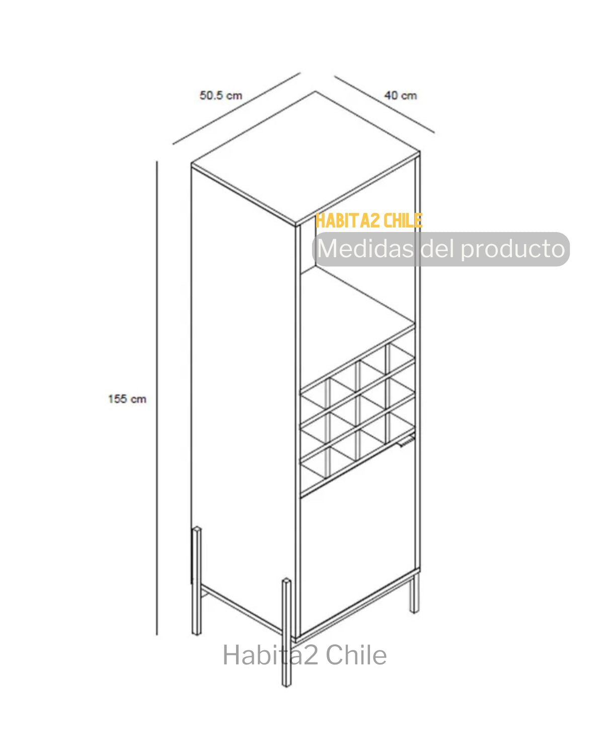 Convierte tu living o comedor en un espacio lleno de estilo con este bar vertical de diseño moderno y funcional. Ideal para organizar tu colección de vinos y copas, al mismo tiempo que aporta un toque elegante a tu hogar.