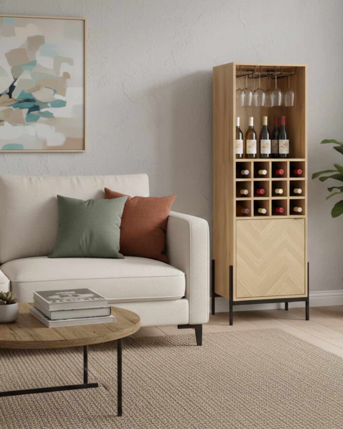 Este bar vertical no solo organiza, también decora. Perfecto para amantes del vino o quienes buscan un mueble funcional y con presencia.