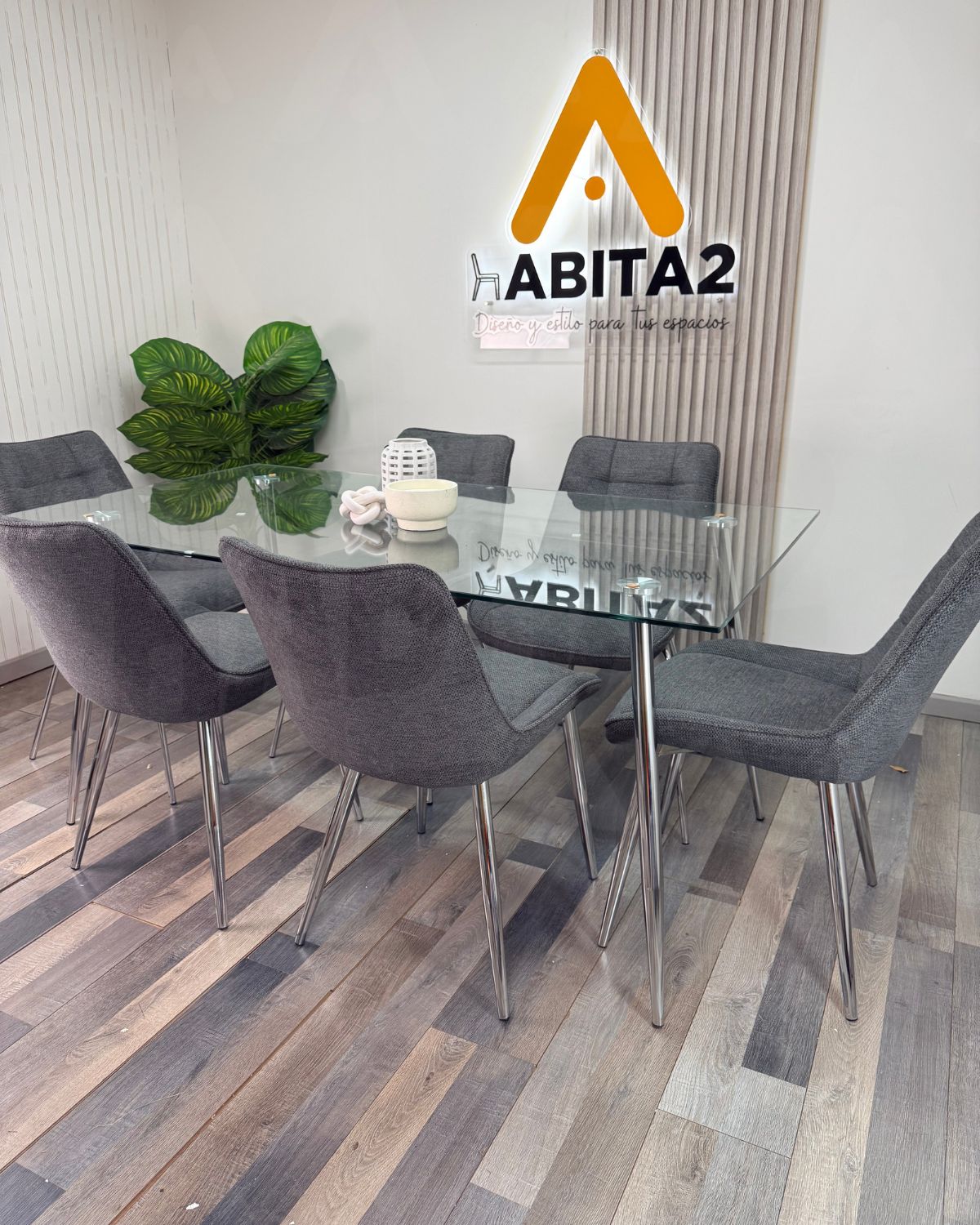 Comedor Moderno con Cubierta de Vidrio Templado y Sillas Tapizadas