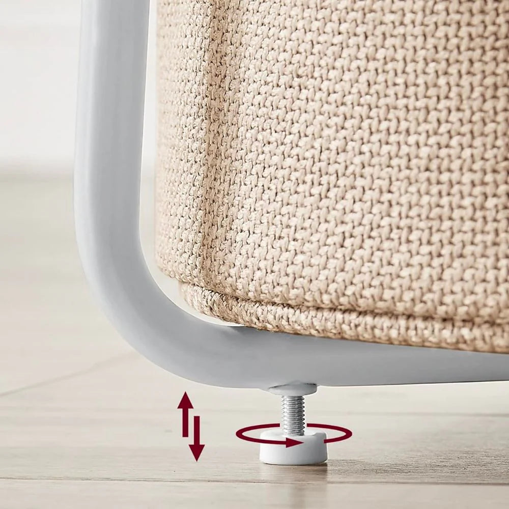 Funcionalidad y estilo se unen en esta práctica mesa auxiliar, ideal para tu sala de estar, dormitorio u oficina. Su diseño moderno combina una estructura metálica blanca con un canasto de tela en tono beige, ofreciendo un look elegante y versátil.