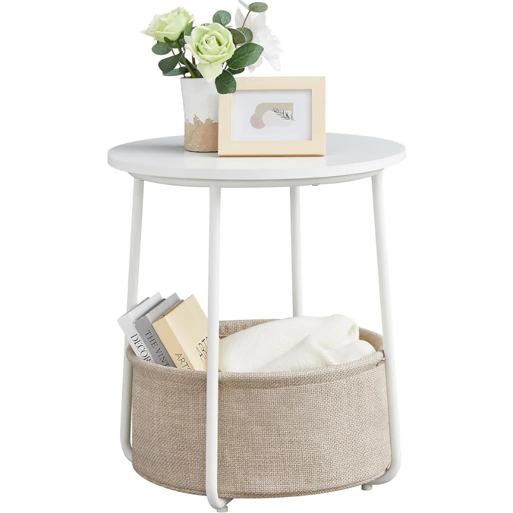 Mesa Auxiliar Redonda Leslie con Canasto de Tela