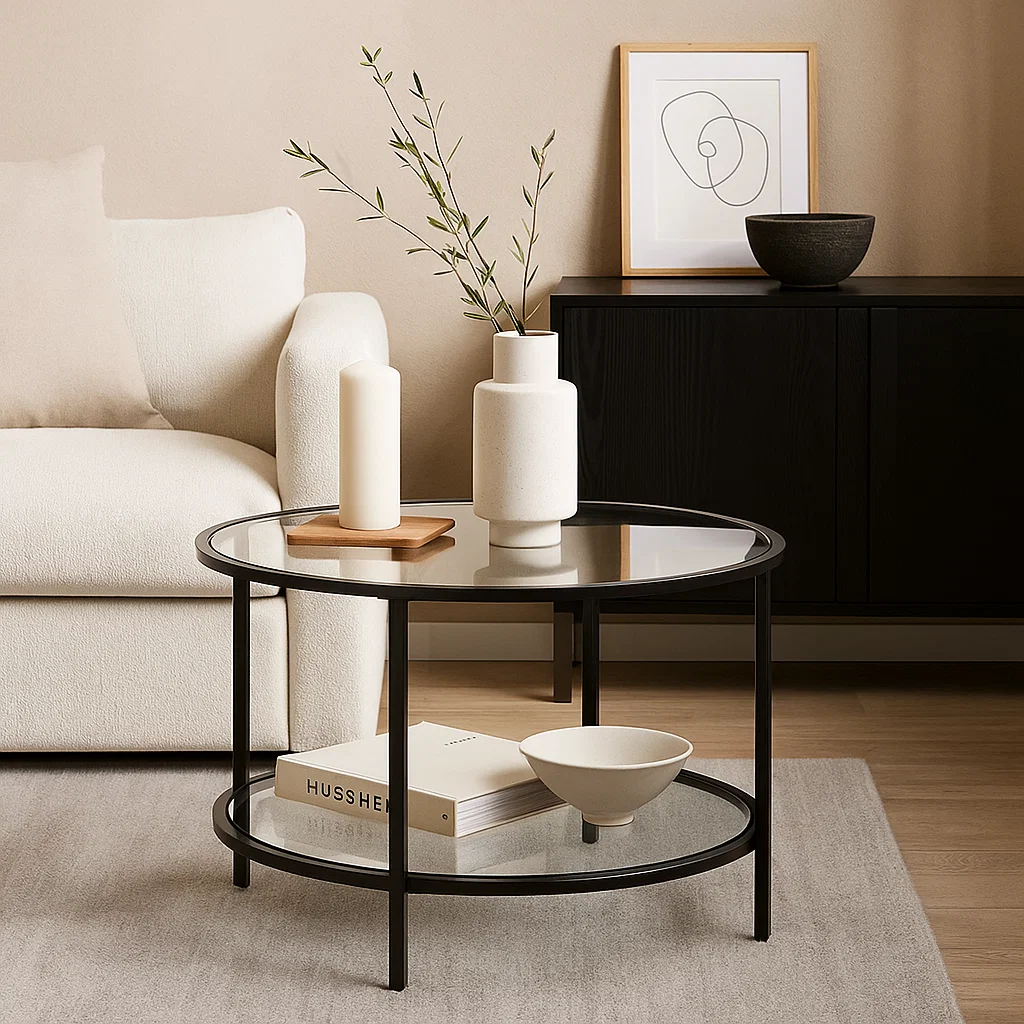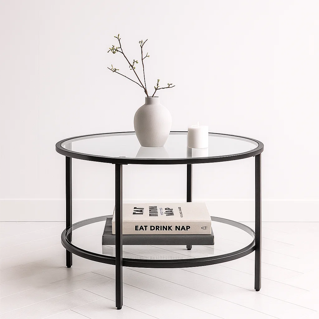 Añade estilo, amplitud visual y funcionalidad a tu sala con esta mesa de centro moderna y minimalista. Su cubierta de vidrio templado transparente aporta ligereza y elegancia, mientras que la estructura metálica en negro ofrece estabilidad y un acabado sofisticado.