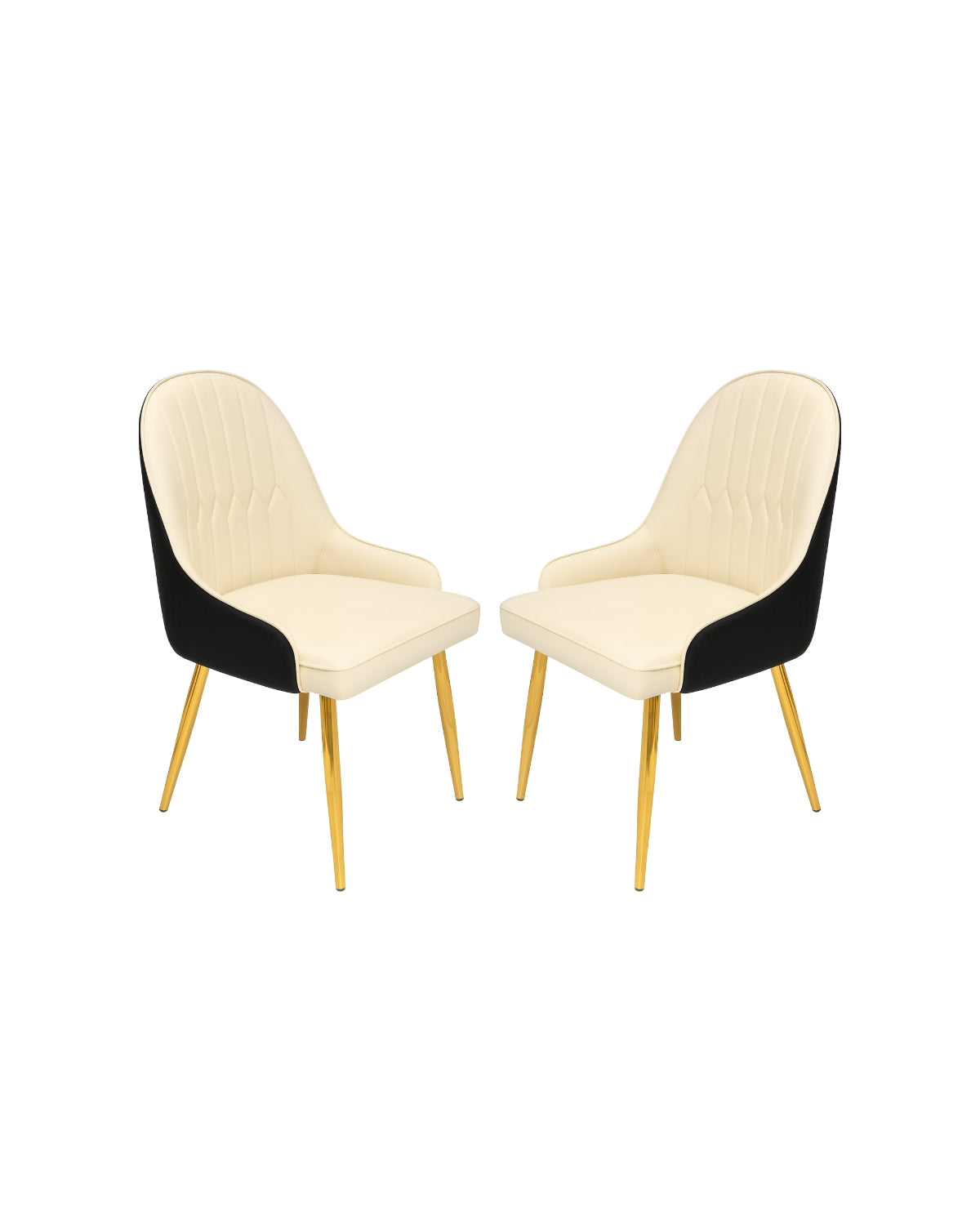 Su respaldo ergonómico con costuras decorativas y parte posterior en color negro, junto a las patas metálicas doradas, crean un contraste moderno y glamuroso que transformará cualquier ambiente.