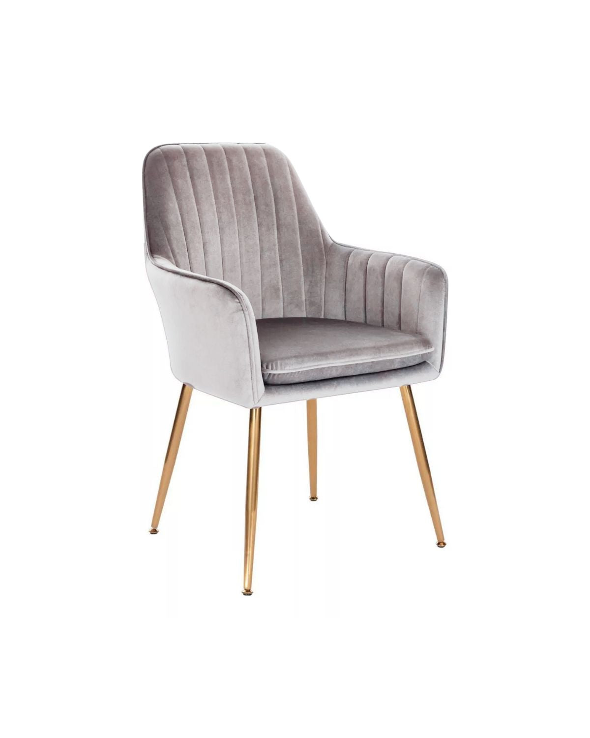 Sitial tapizado en tela tipo velvet, respaldo y apoyabrazos acolchados para mayor confort, finas terminaciones de costuras en forma de líneas en el respaldo brinda al usuario mayor comodidad en las zonas de la espalda, sus patas están fabricadas en metal en color que simula madera, lo cual genera en este sitial un estilo de alto estándar al alcance de tu mano. Puedes usarlo para complementar zonas del living, construir una esquina de lectura u ocio ¿y por qué no? hasta usar de sillas en extremos para comedores rectangulares. Toda una joya del diseño nórdico.