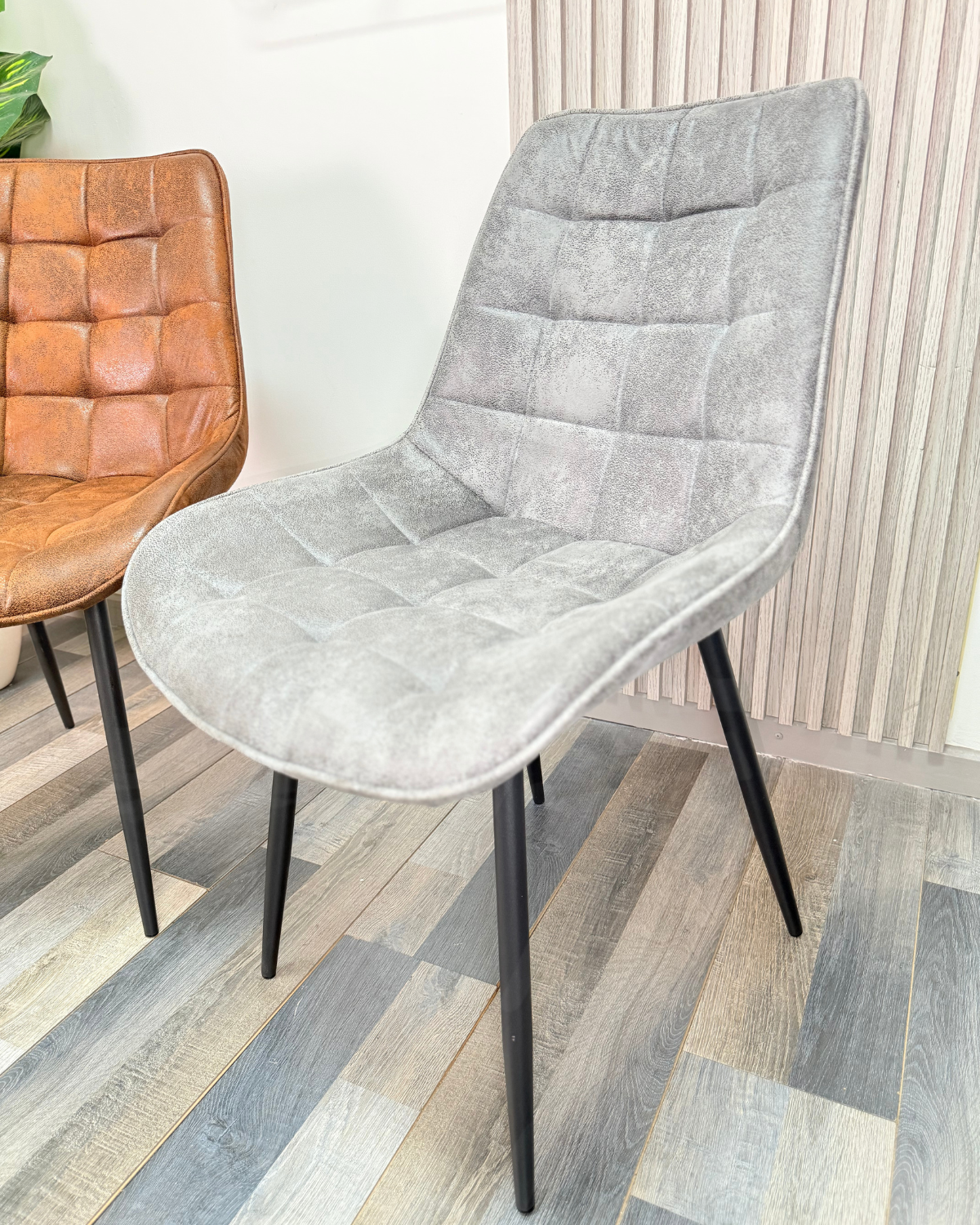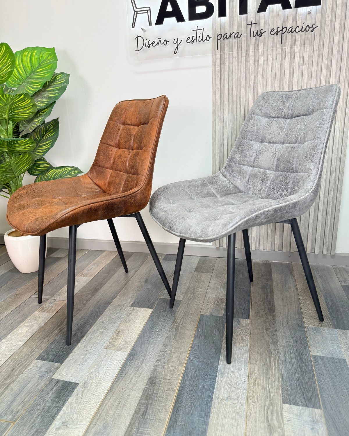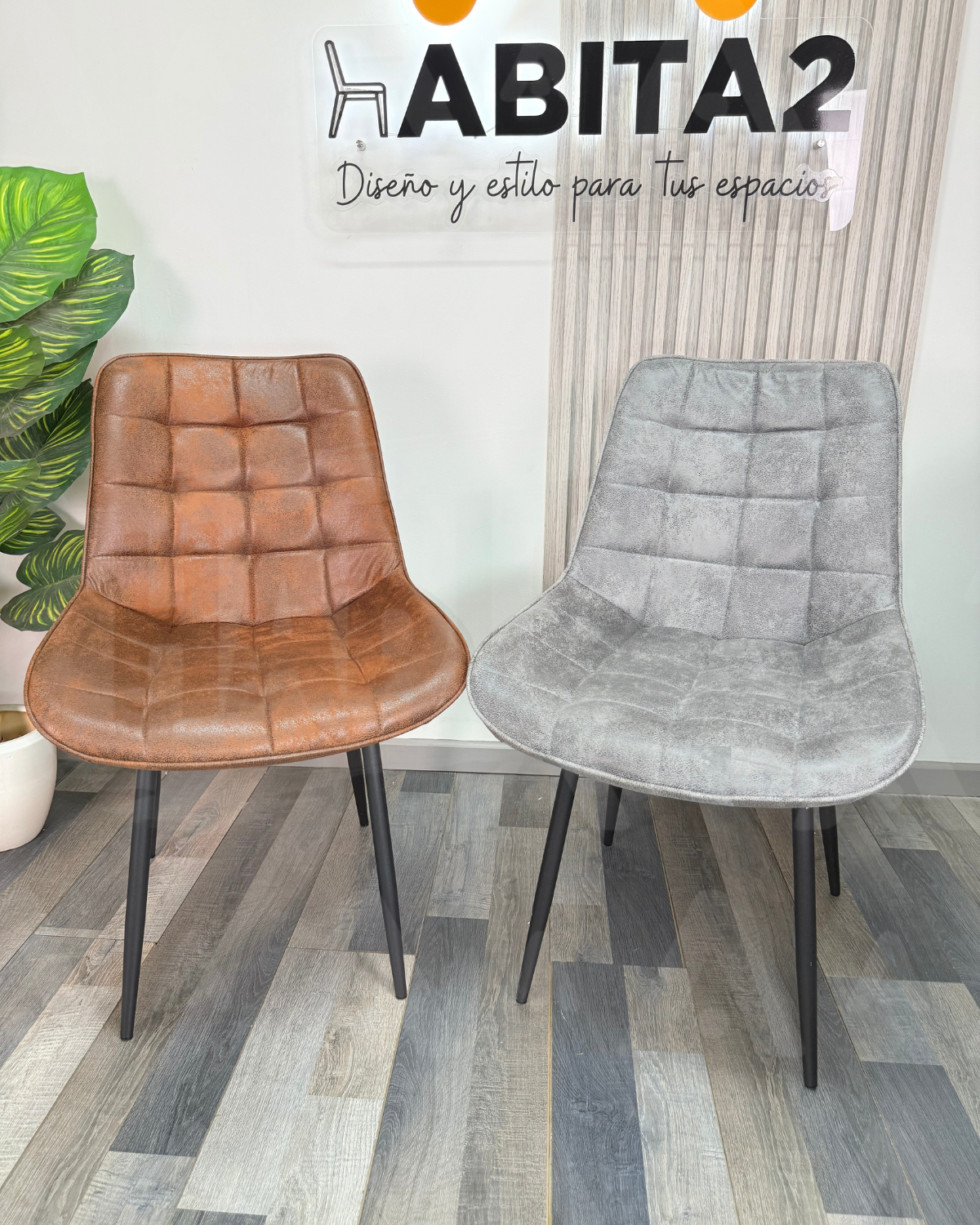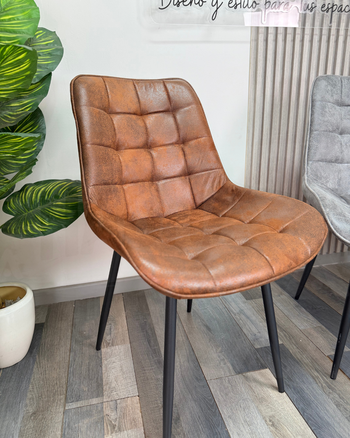La silla Cuadros con su diseño contemporáneo, combinado con el suave tapizado en Gamuza sintética, añade un toque de sofisticación a tu hogar. Sus tonos, marrón vintage o gris aportan una estética cálida y versátil que se adapta a distintos estilos de decoración. Además de su estilo, esta silla ofrece comodidad gracias a su diseño ergonómico. Ideal para cualquier espacio, ya sea como pieza independiente o para complementar tu comedor o zona de trabajo