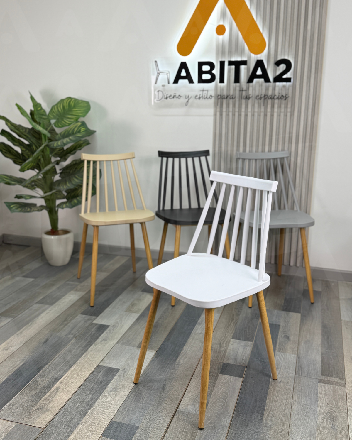 La silla Royal de estilo nórdico combina líneas limpias, materiales cálidos y un diseño atemporal que se adapta con facilidad a distintos espacios del hogar. Su respaldo de varillas verticales aporta ligereza visual y soporte ergonómico, mientras que el asiento amplio garantiza comodidad en el uso diario.