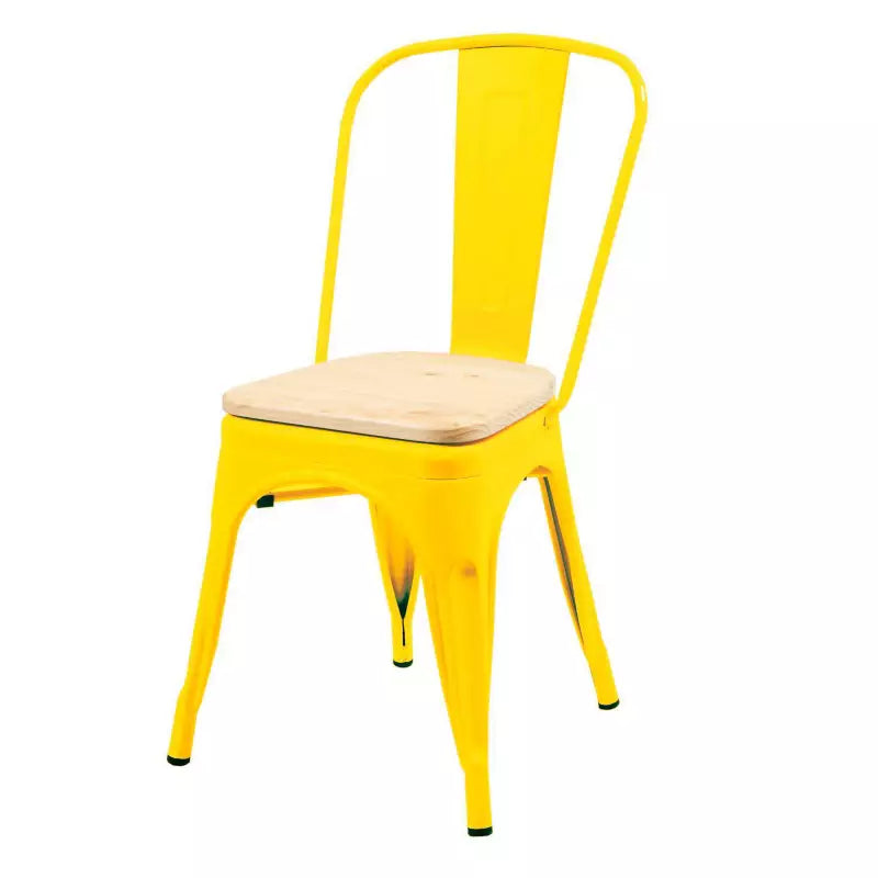 Una silla de carácter industrial, la favorita para hogares o comercios de alto tráfico. El tope de madera agrega un toque nórdico y agradable a la vista. Combina con casi todos los tipos de mesa
