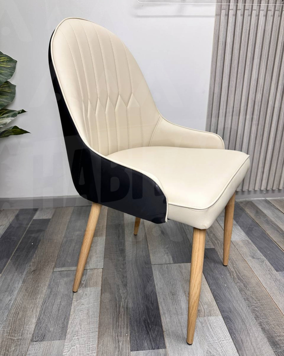 Su respaldo ergonómico con costuras decorativas y parte posterior en color negro, junto a las patas metálicas con terminación hotprint que simula madera, crean un contraste moderno que transformará cualquier ambiente.