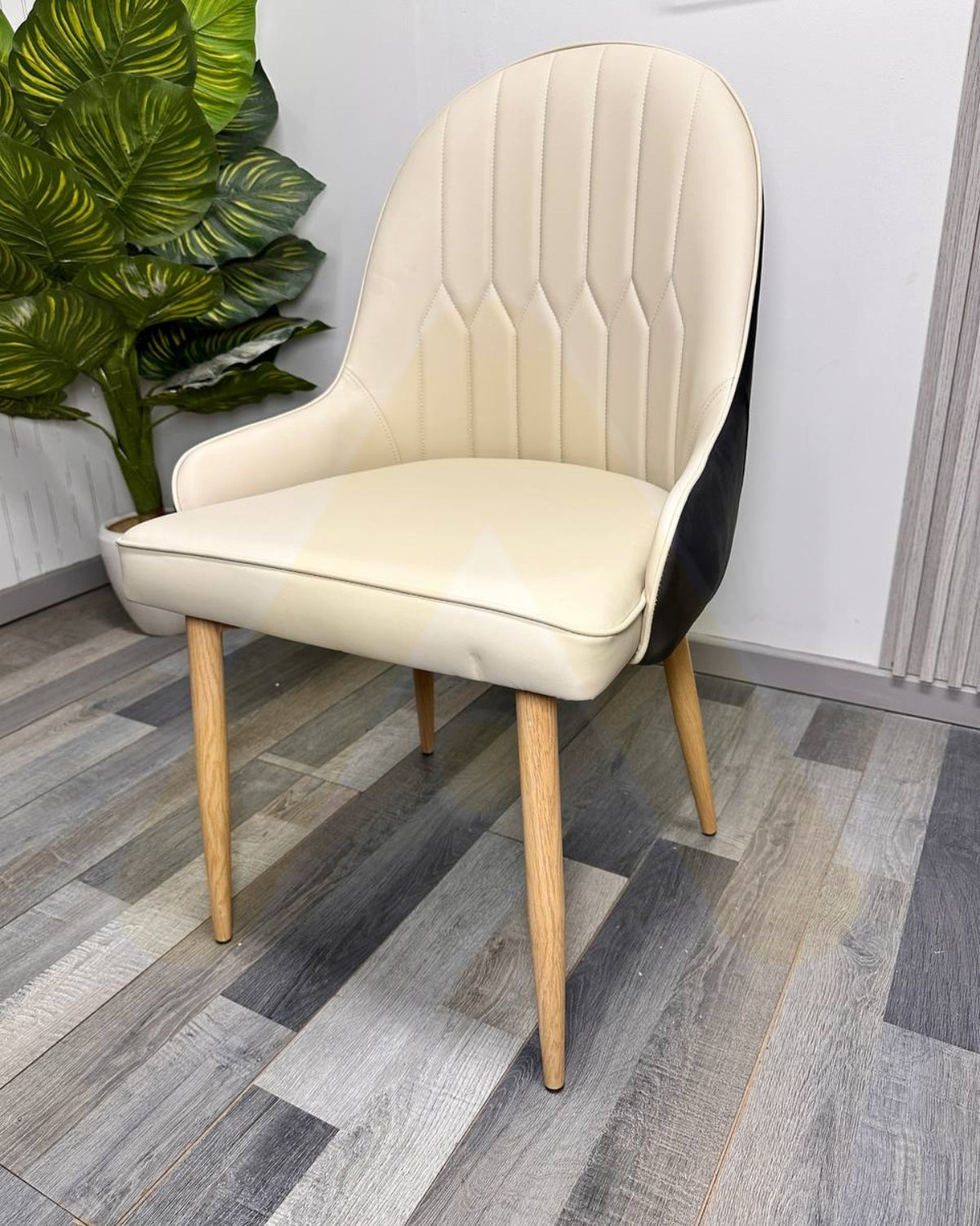 Silla Tapizada con Patas Metálicas color Madera